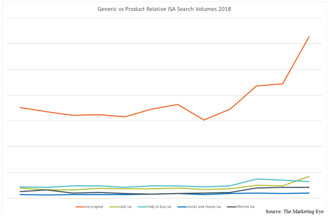 “Generic ISA searches still get a massive amount more volume than product-specific searches,” said the marketing firm.